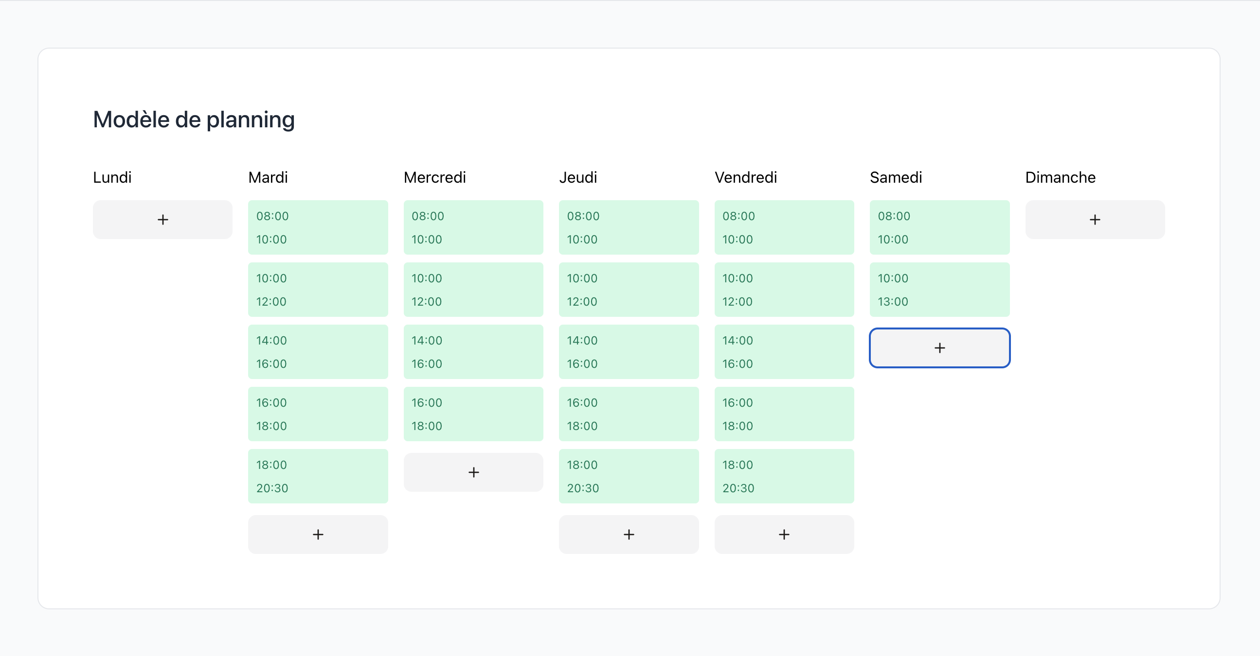 Automatisez la création de plannings récurrents et personnalisez chaque créneau en un instant.